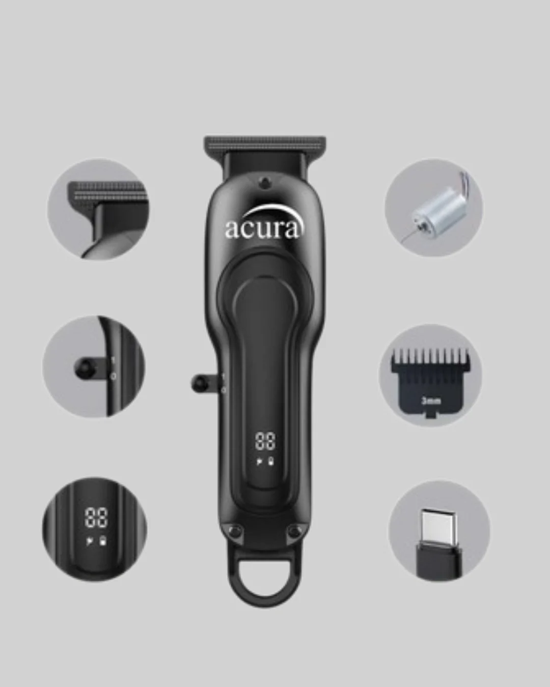 7000 RPM Güçlü Motorlu LCD Göstergeli Şarjlı Tıraş Makinesi