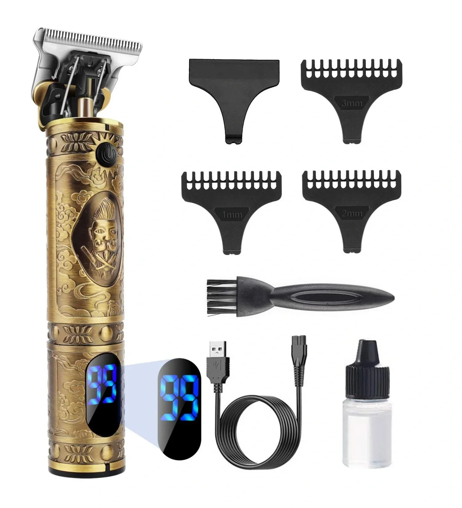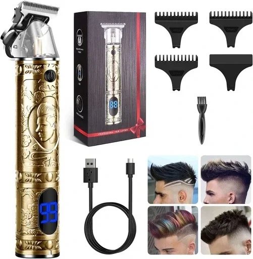 Pro 2 in 1 Vintage Traş Makinesi Şarjlı Dijital Göstergeli Aliminyum Gövde Vıntage Dijital Lcd Ektan T Bıçak Tıraş Makinesi Epilasyon Öncesi Vüvut Sakal Ense Çizim LCD Dijital Ekran T9 Tüm Metal Tıraş Makinesi Seyahat Taşınabilir Elektrikli Berber Elektrikli İtici Saç Kesme Makinesi LCD Ekran Dragon Profesyonel Şarjlı Çok Fonksiyonlu Tıraş Makinesi
