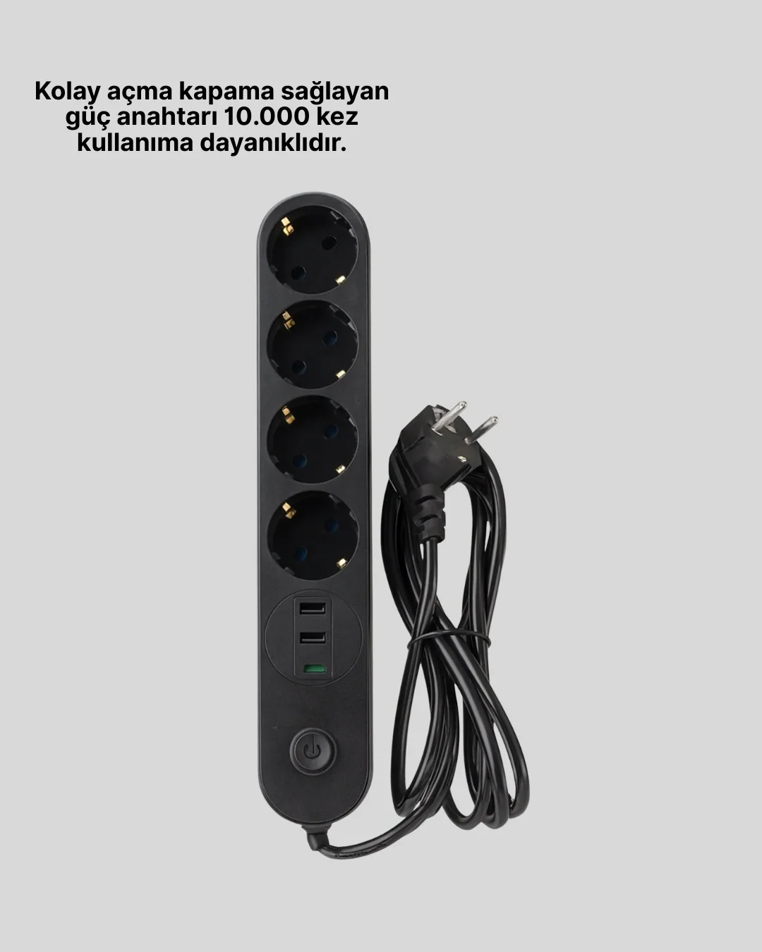Anahtarlı Çoklu Priz 3 USB 1 Type-C Hızlı Şarj Destekli