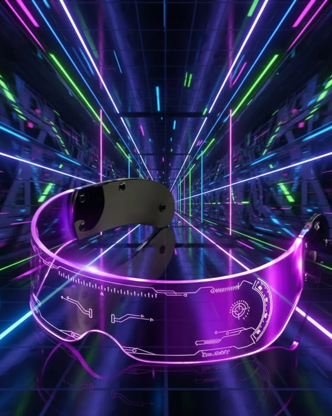 LED Işıklı Rave Gözlüğü 7 Renk 5 Işık Modu Futuristik Tasarım