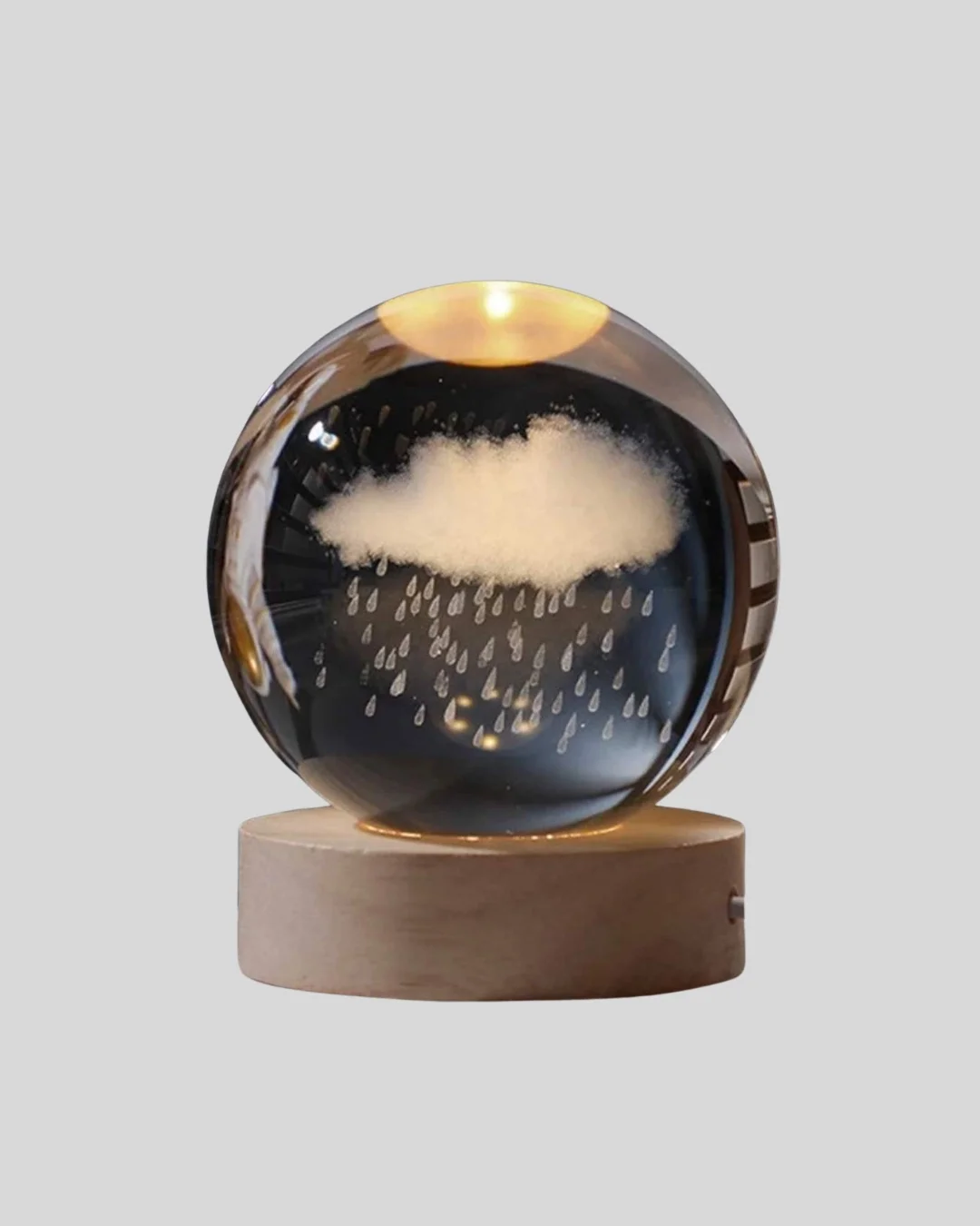 LED Sıcak Işıklı 3D Bulut Figürlü Kristal Küre Ahşap Standlı Gece Lambası