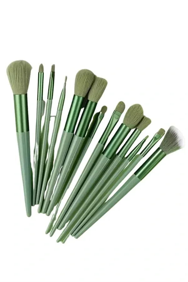 Makyaj Fırça Seti Yeşil 13 Parça Fondöten Fırçası Allık Fırçası Far Fırçası