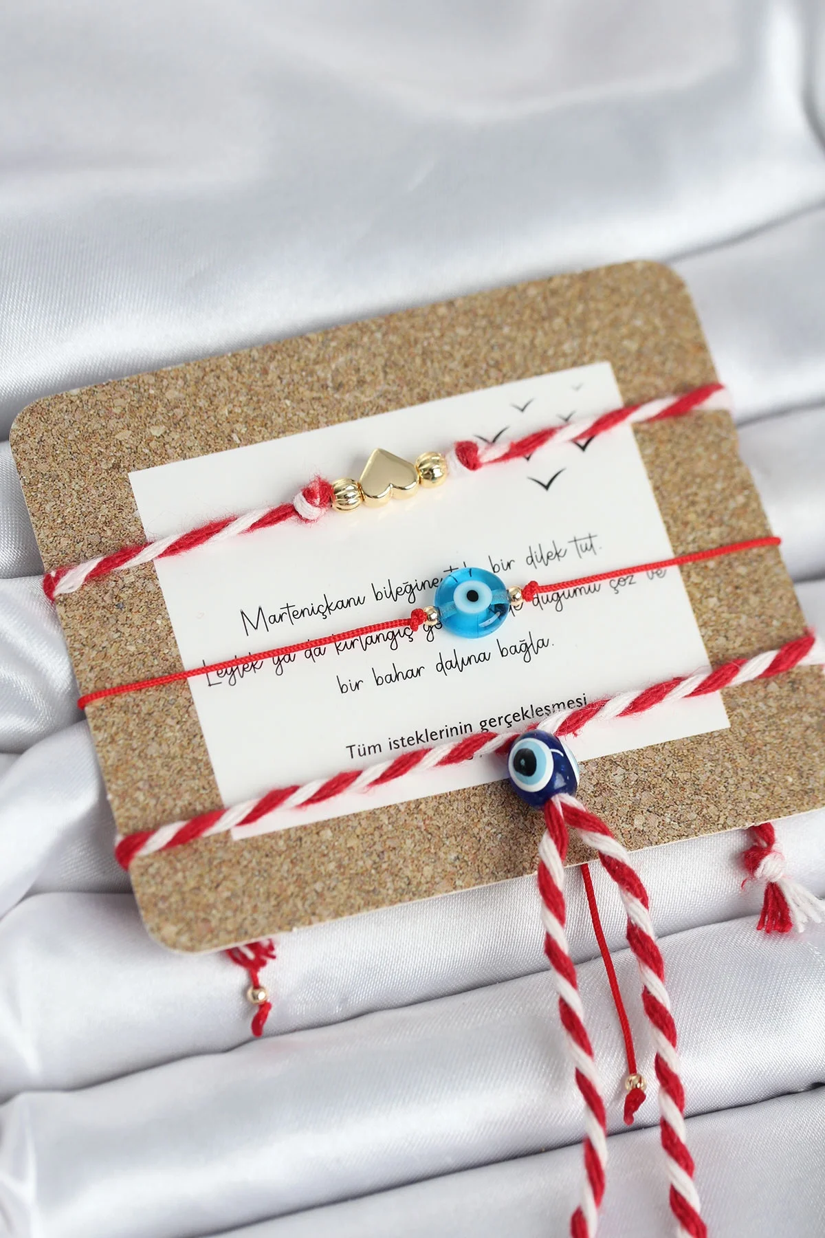Marteniçka Bileklik 3'lü Düğümlü kalp ve Nazarlı Model
