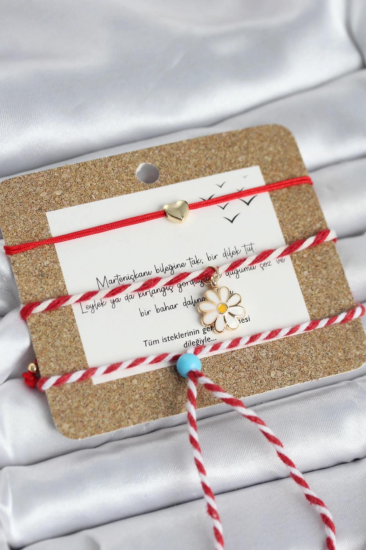 Marteniçka Bileklik 3'lü Papatya ve Kalp Model