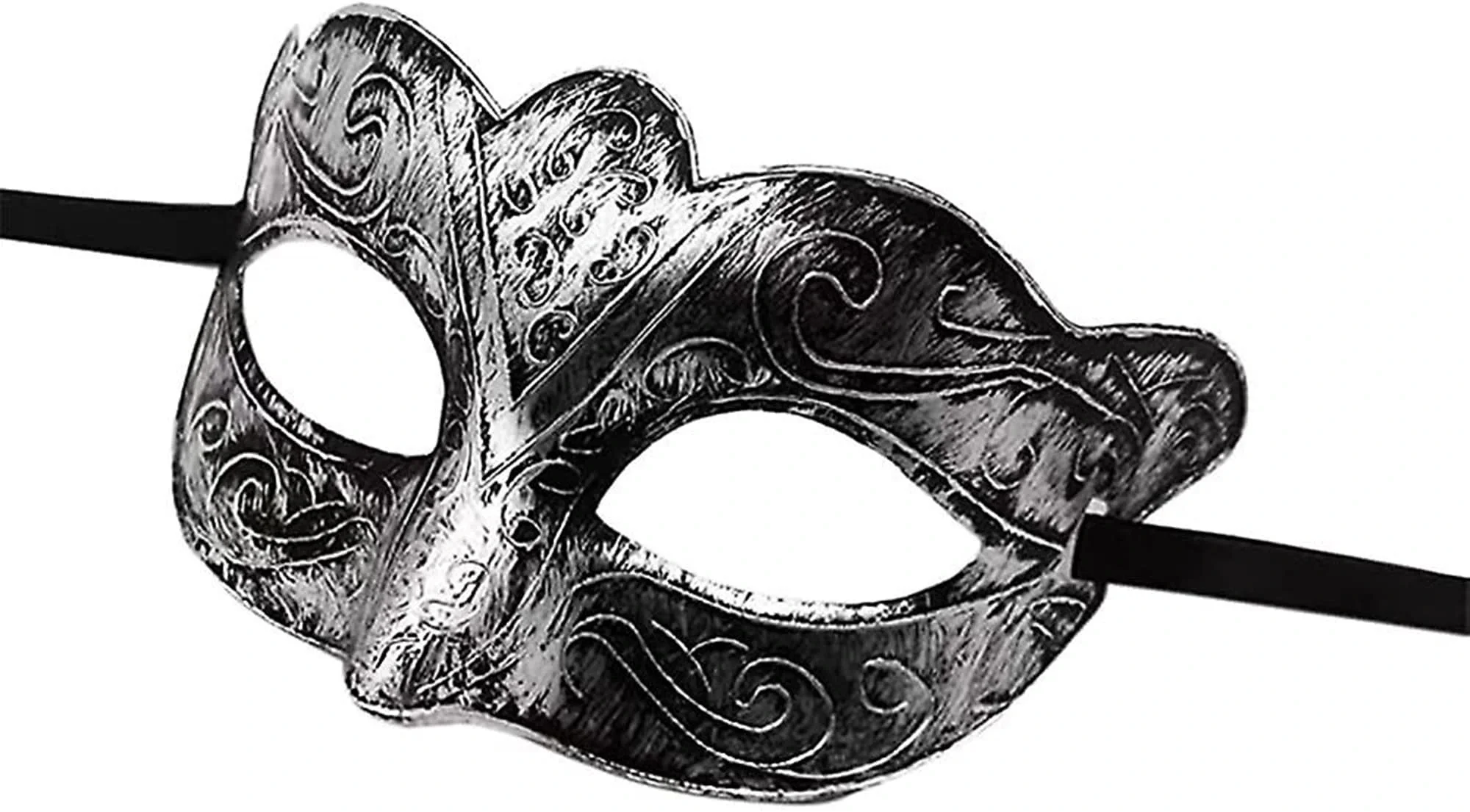 Antik gri gümüş renginin ve eskitilmiş görünümünün verdiği özgünlük ile Venedik maskeleri dünyasına adım atın. Bu özel maske, maskeli baloların ve temalı partilerin vazgeçilmez aksesuarı olacak.