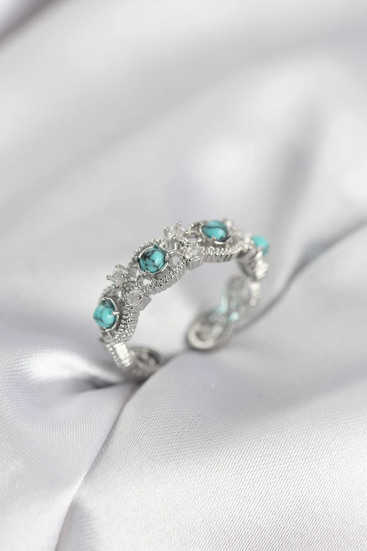 Mavi Taşlı Gümüş Renk Vintage Kadın Yüzük