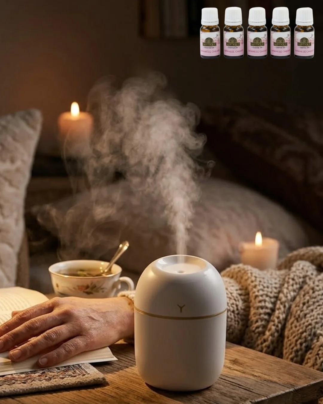 Aromaterapi Özellikli Mini Hava Nemlendirici 5 Esans Hediyeli LED Işıklı Difüzör