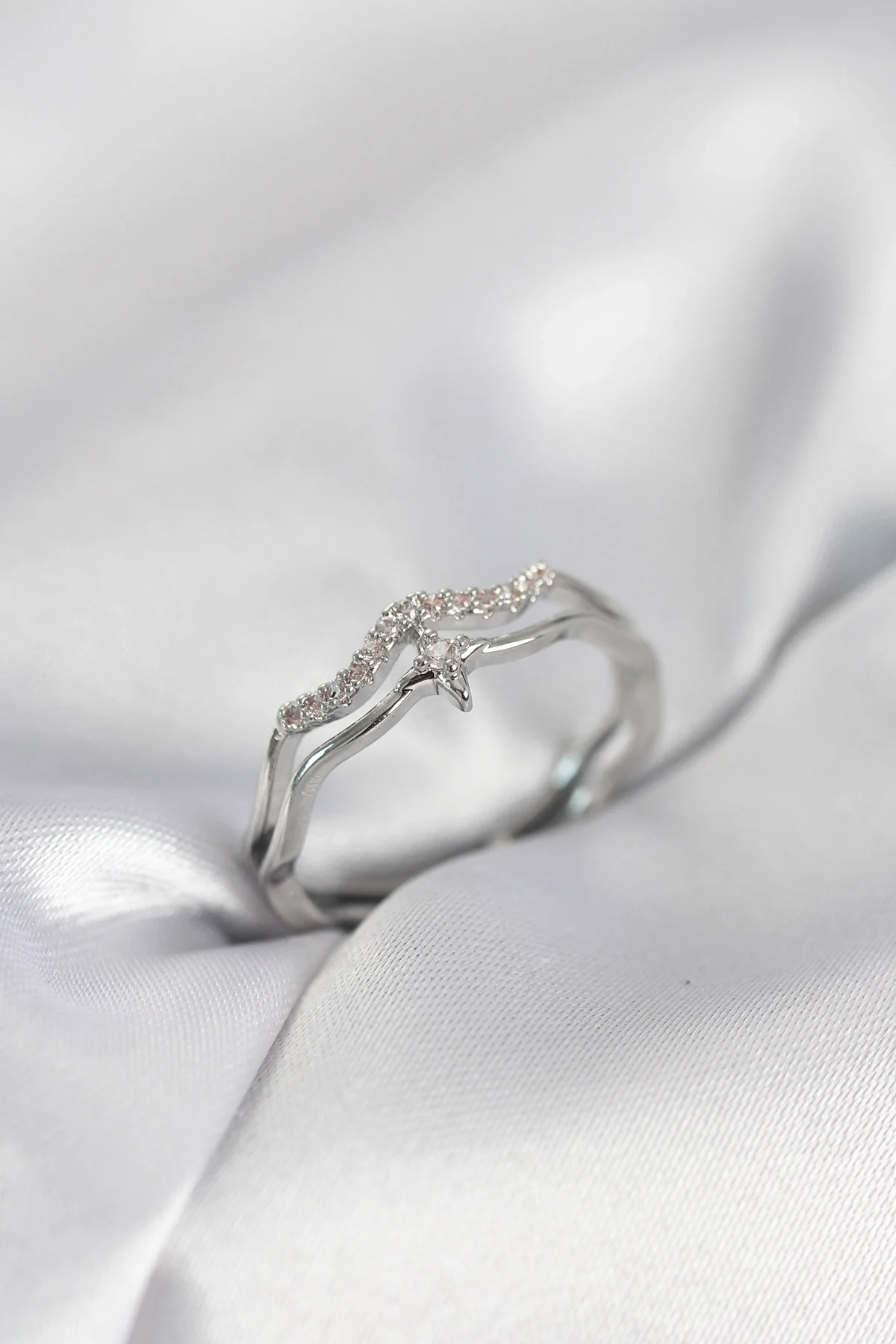Minimal Yıldız Model Gümüş Renk Zirkon Taşlı Kadın Yüzük