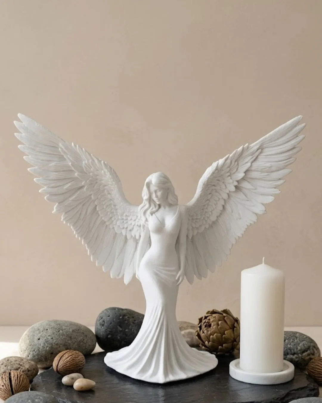 Kanatlı Melek Figürü 3D Baskı Dekoratif Heykel Biblo Ev Ofis Aksesuarı