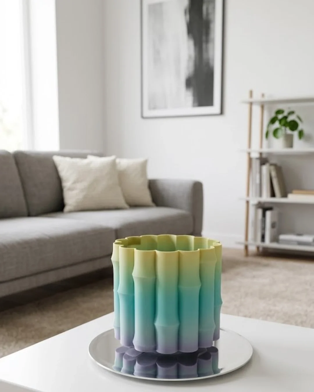 Modern Dekoratif Vazo Yeşil Geçişli Şık Tasarım Masa Üstü Kullanım