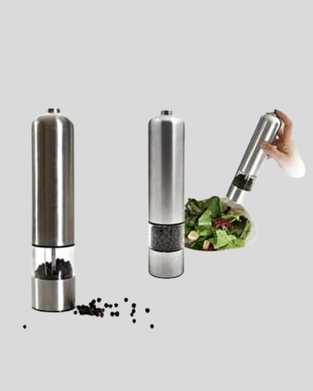 Modern Otomatik Baharat Öğütücü Seti – Pilli, Paslanmaz Çelik, LED Aydınlatmalı