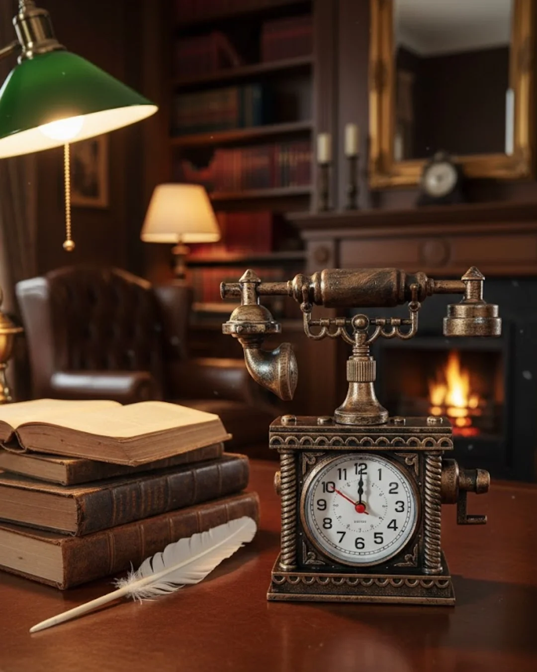 Vintage Telefon Tasarımlı Masa Saati ve Çalar Saat Dekoratif Model