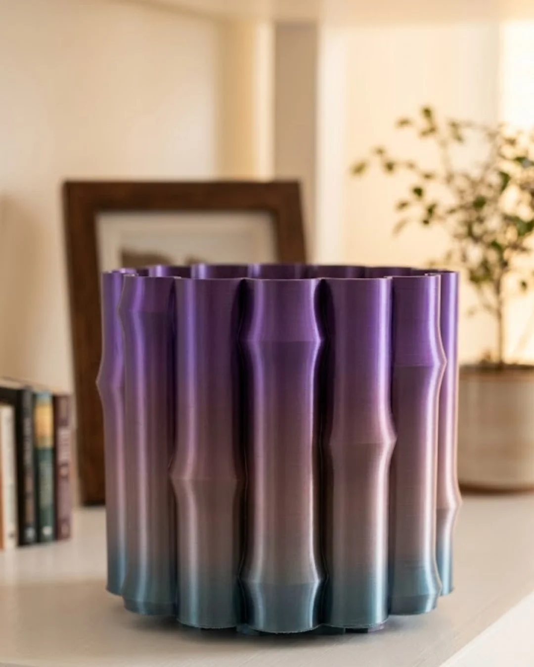 Sanatsal Dalga Desenli Mor 3D Baskı Dekoratif Vazo Ev Dekorasyonu