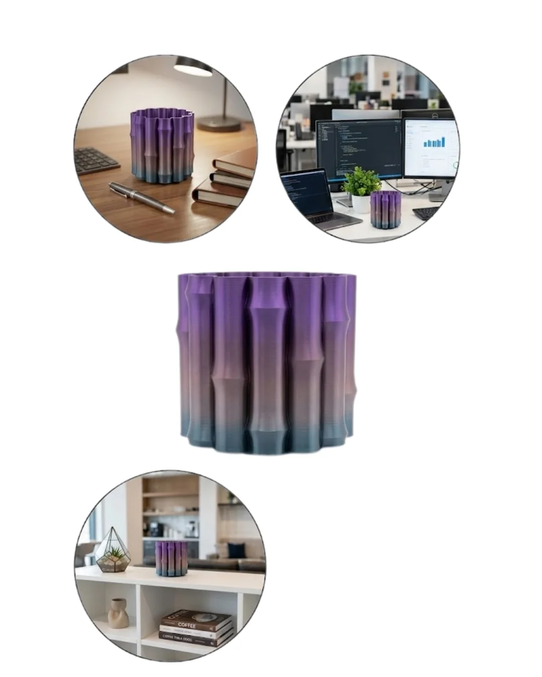 Modern Dekoratif Vazo Mor Gri Geçişli Şık Tasarım Masa Üstü Kullanım