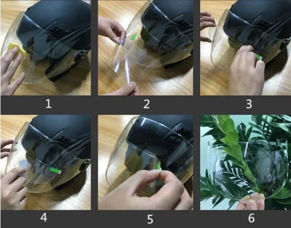 2. Anti-sis-yağmur filmi kask içine veya dışına yerleştirin (kask içine yerleşim anti-sis, dışına yerleşim anti-yağmur)