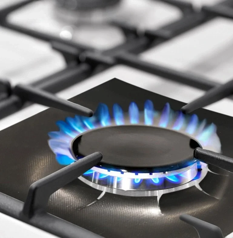 Gaz ocaklar için koruyucuyu yüzey kaplaması ocakta ateşin altına yerleştirin.
