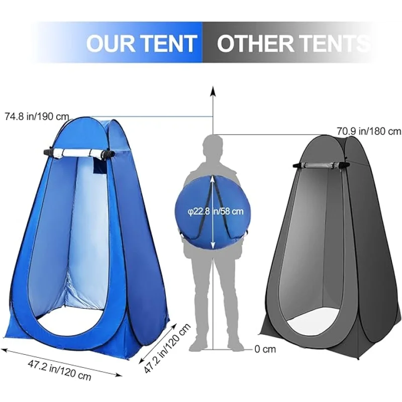 Ayrıca, duş yapmak veya kamp tuvaletini kullanmak isteyenler için kullanışlı bir alan sunar. Bu özellikler, kullanıcının kamp alanında daha fazla gizlilik ve rahatlık sağlamak amacıyla eklenmiştir.