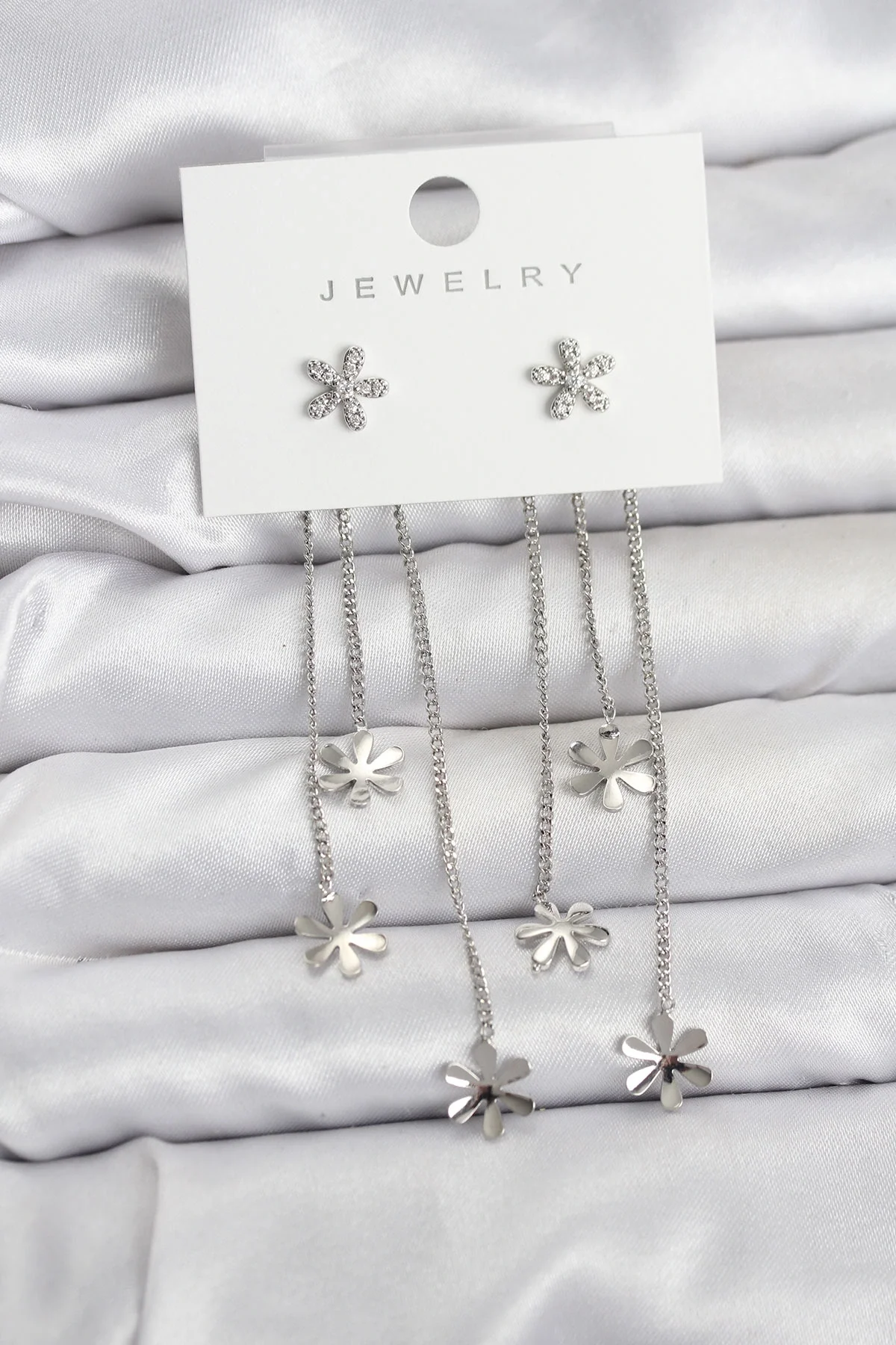 Papatya Model Gümüş Renk Pirinç Sallantılı Kadın Küpe