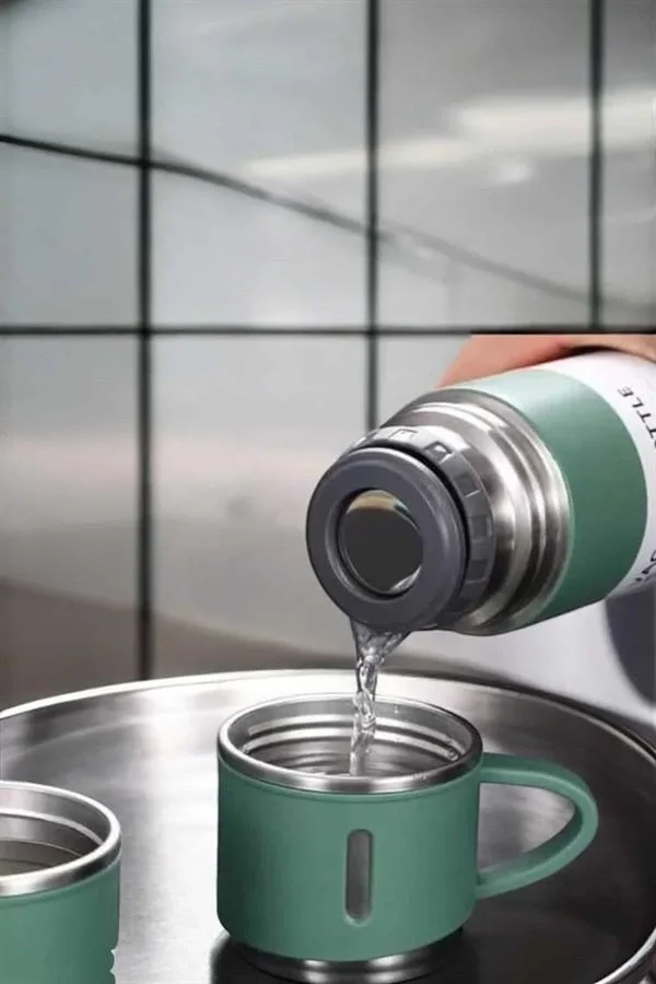 Isıyı Uzun Süre Koruyan 500 ml Termos Seti | Çelik Gövde, 2 Bardaklı, Hediye Kutulu