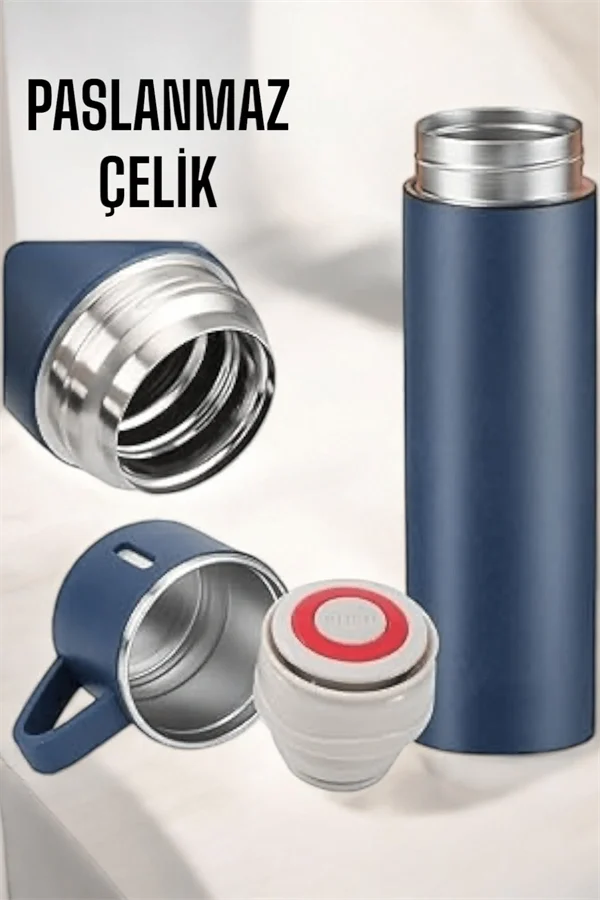 500 ml Isı Korumalı Çelik Termos ve Bardak Seti | Silikon Tabanlı, Şık ve Pratik