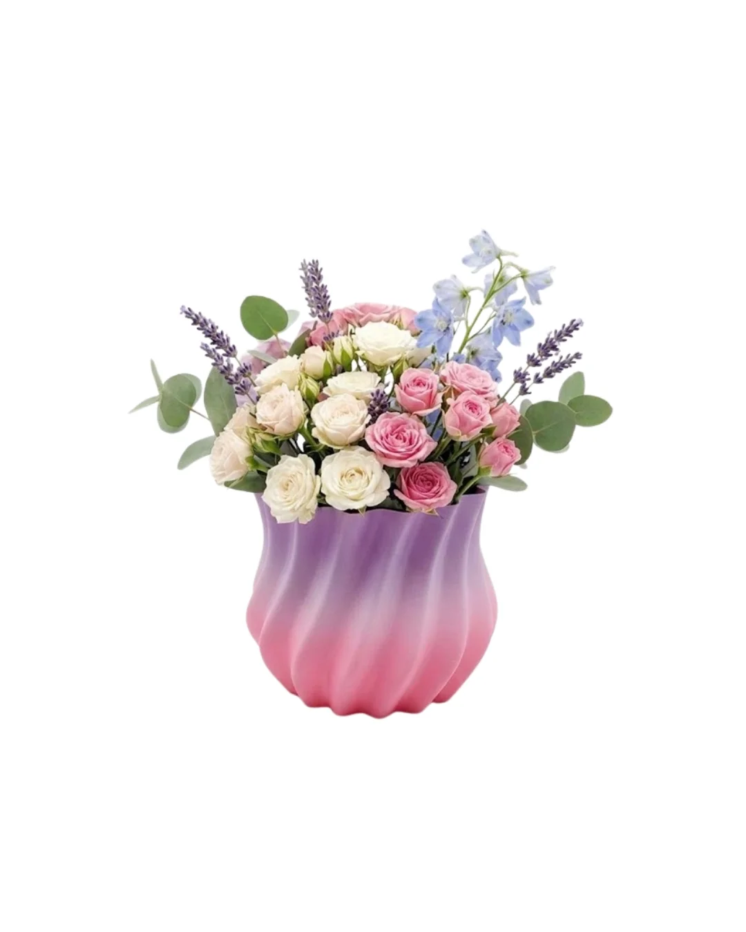 Pembe Lila Degrade Kıvrımlı 3D Vazo Estetik Ev Ofis Dekoru