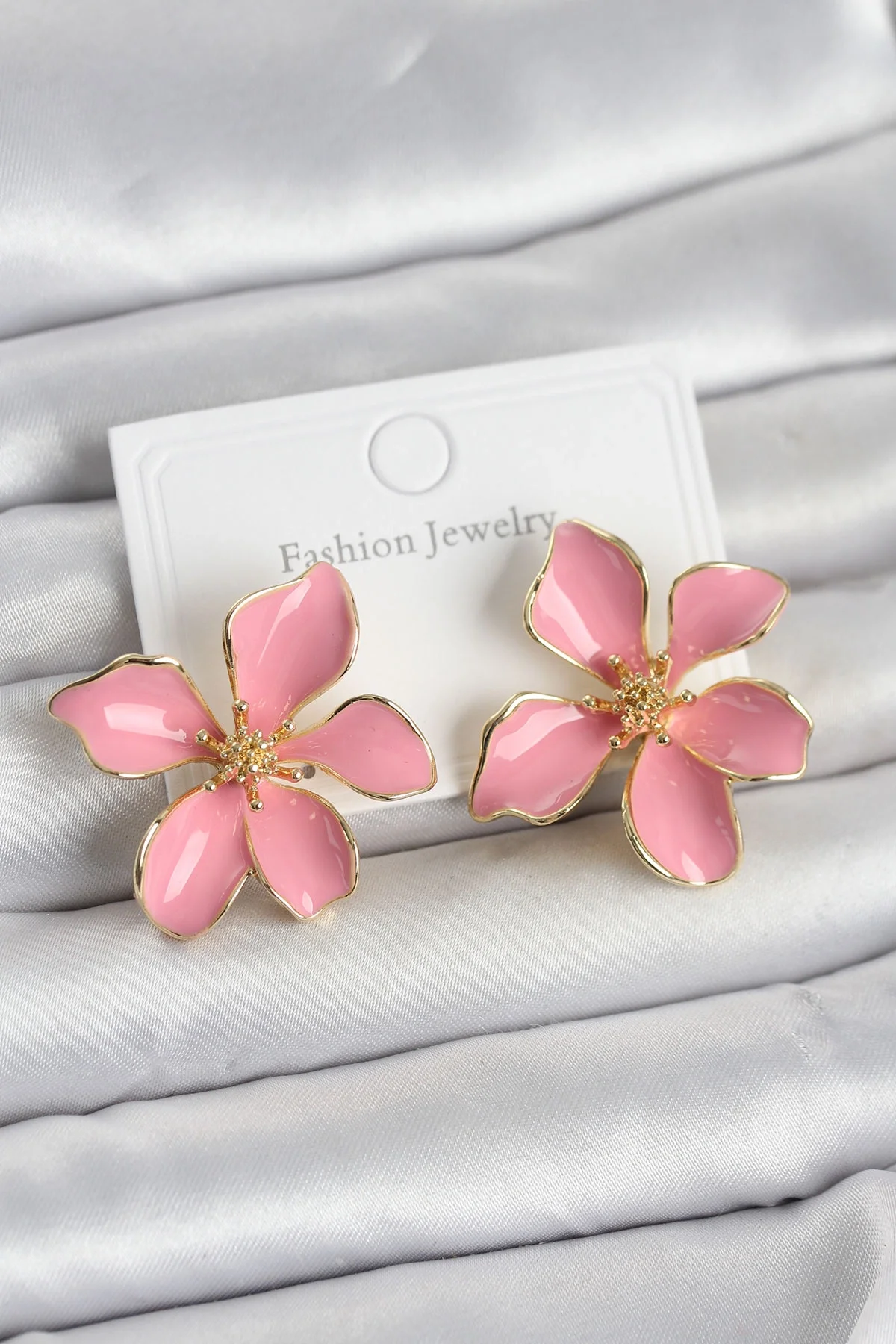 Pembe Mineli Çiçek Model Pirinç Kadın Küpe