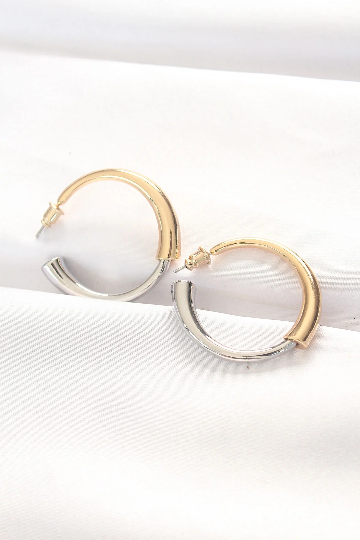 Pirinç Çift Renk Halka Küpe
