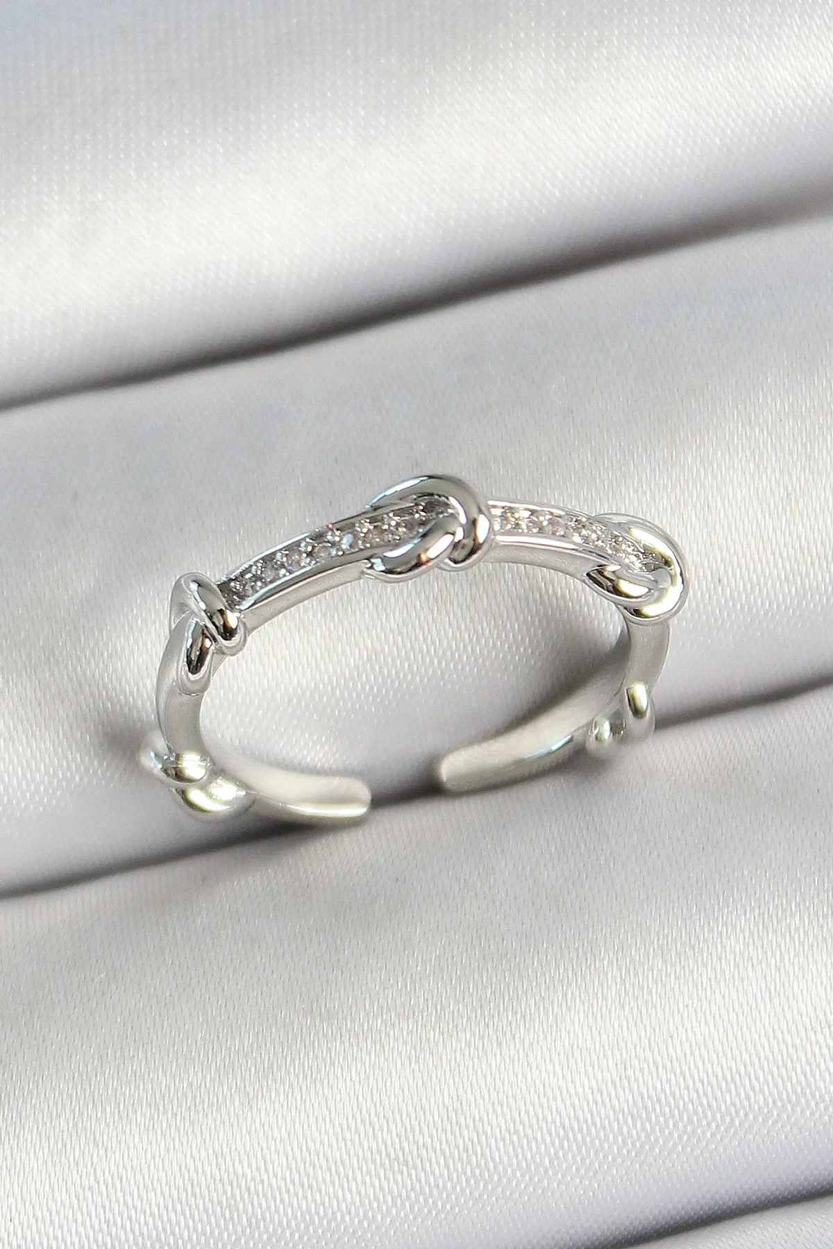 Pirinç Düğüm Figürlü Zirkon Taşlı Gümüş Renk Ayarlanabilir Kadın Yüzük