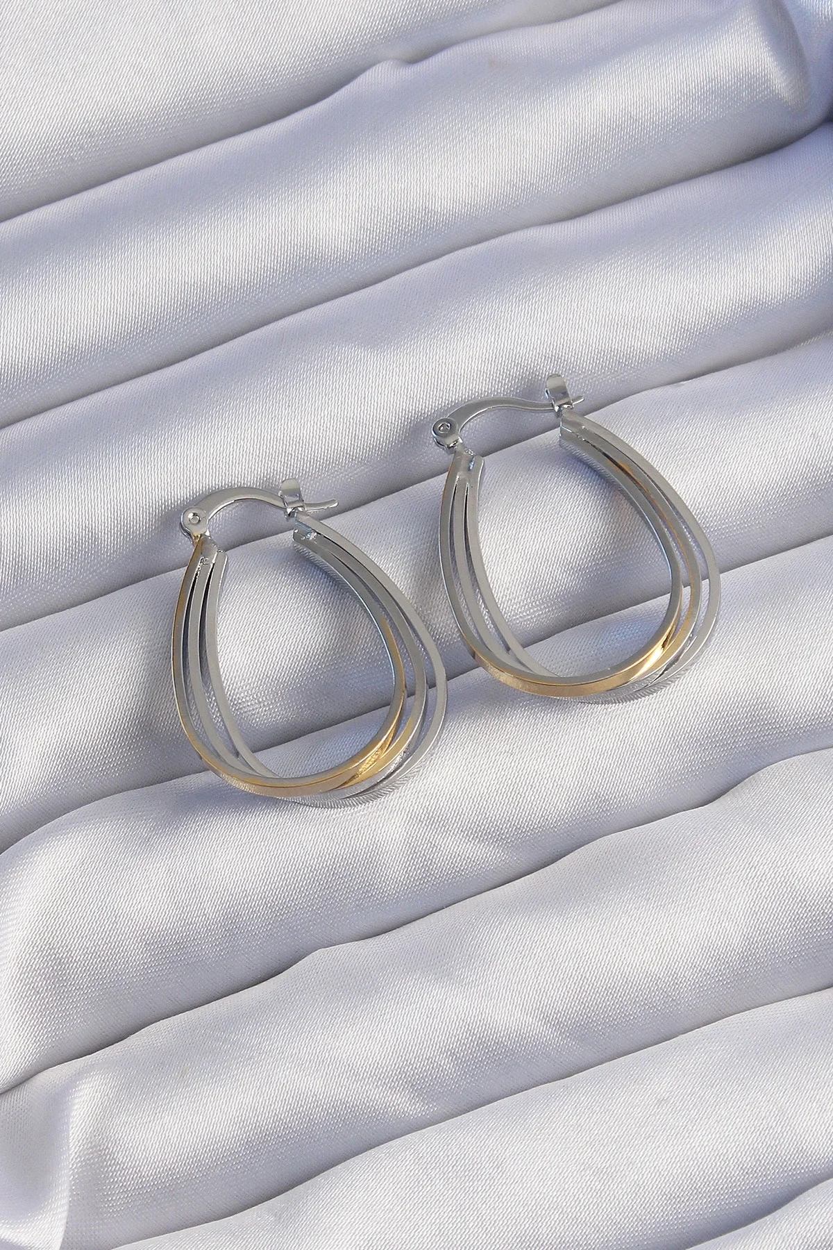 Pirinç Gold Gümüş Renkli Oval Çoklu Görünümlü Küpe