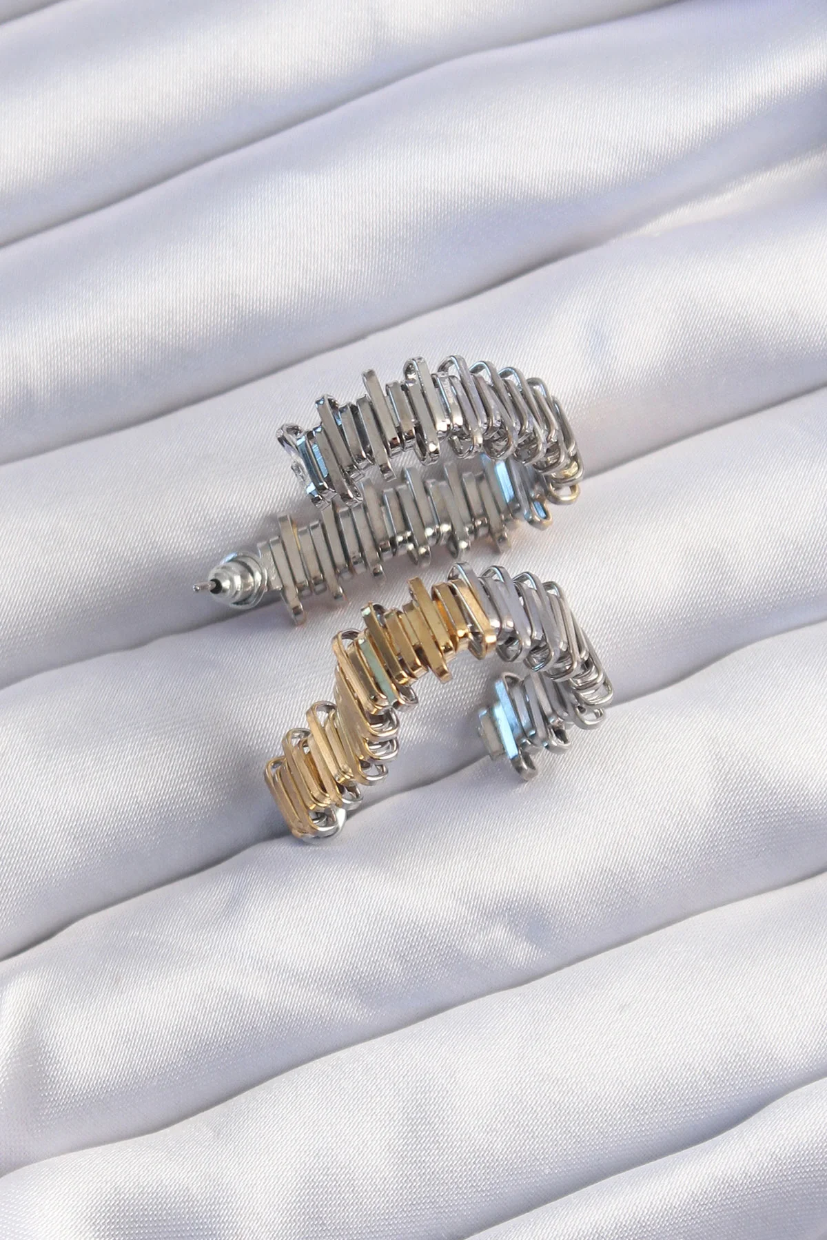 Pirinç Gold Gümüş Renkli Tırtıklı Kalp Küpe