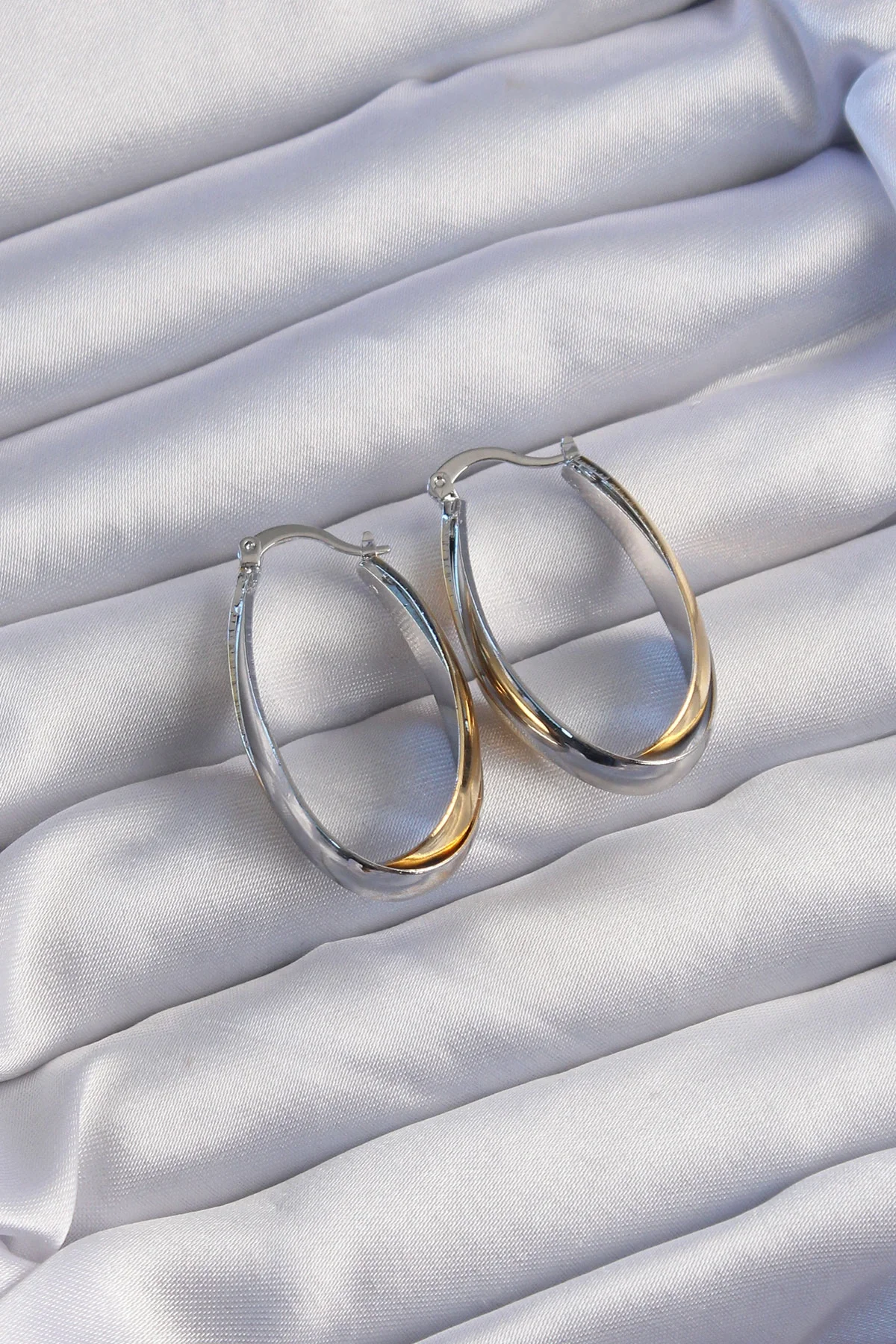 Pirinç Gold Gümüş Renkli Uzun Kıvrımlı Küpe