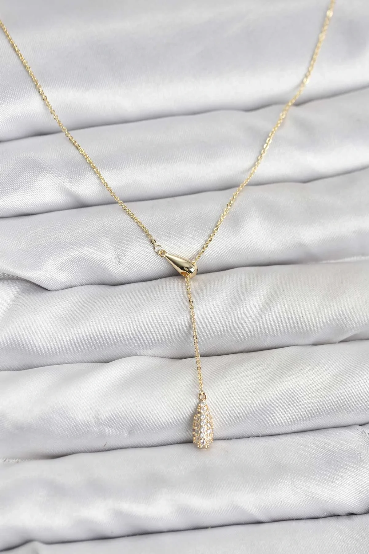 Pirinç Gold Renk Asansörlü Damla Model Kadın Kolye