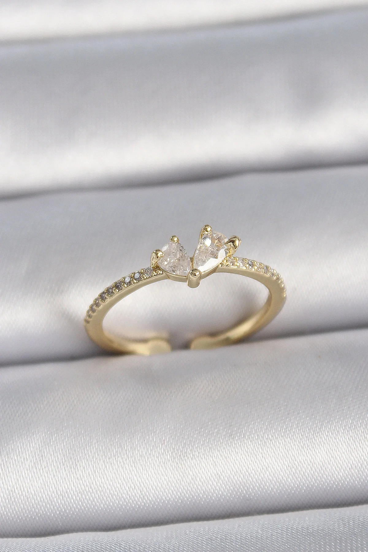 Pirinç Gold Renk Ayarlanabilir Zirkon Taşlı Kalp Model Kadın Yüzük