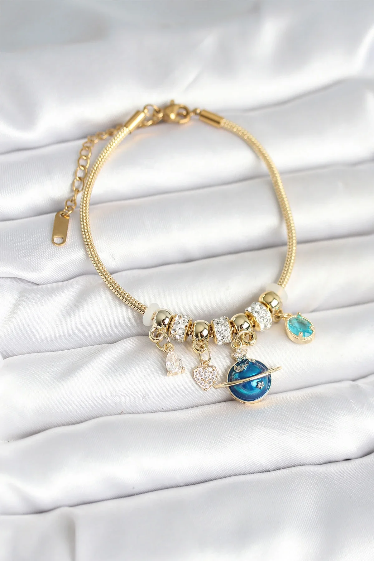 Pirinç Gold Renk Dünya Charmlı Kadın Bileklik