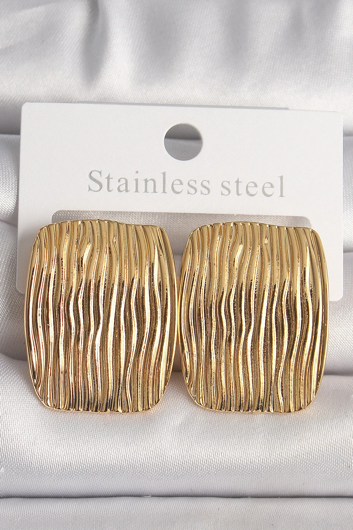 Pirinç Gold Renk İşlemeli Kare Plaka Model Kadın Küpe