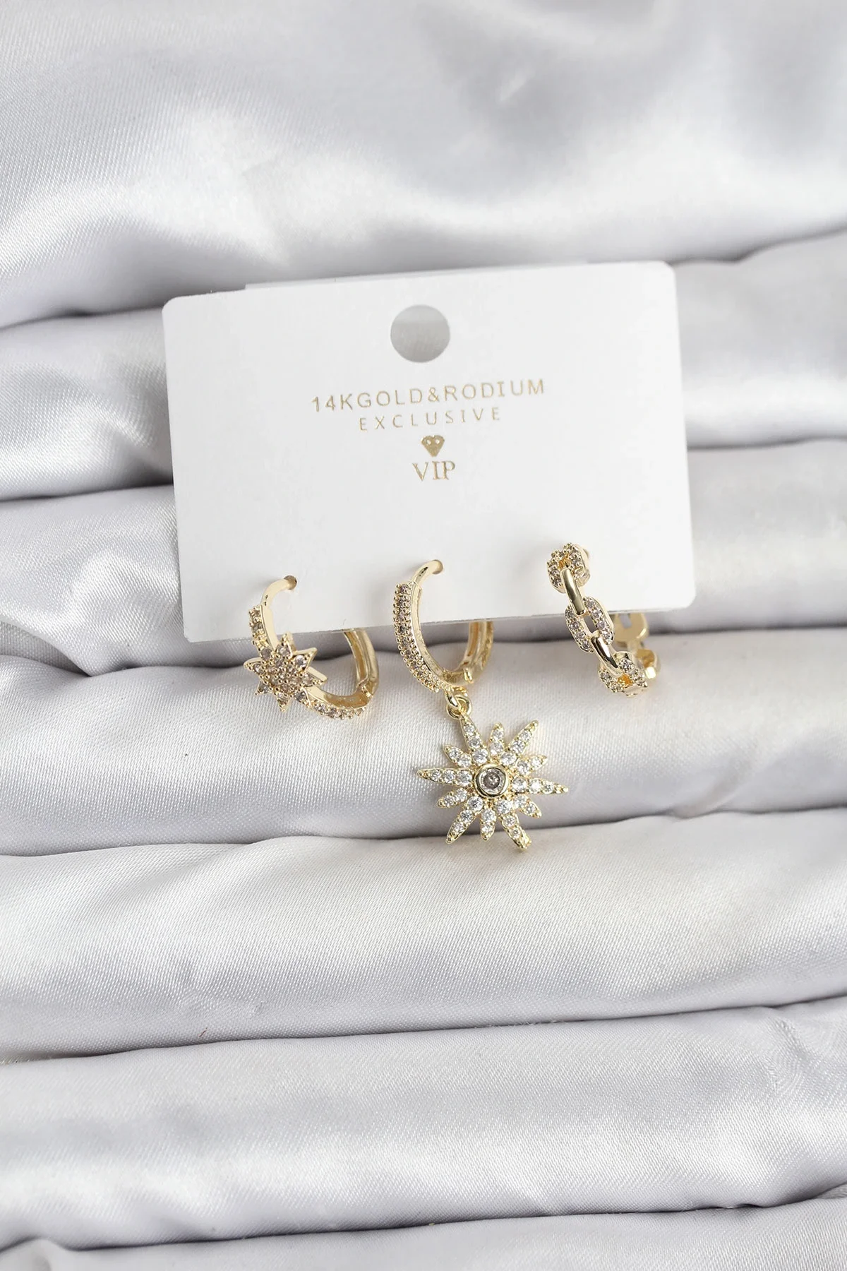 Pirinç Gold Renk Kutup Yıldızı Model 3'lü Kadın Küpe Seti