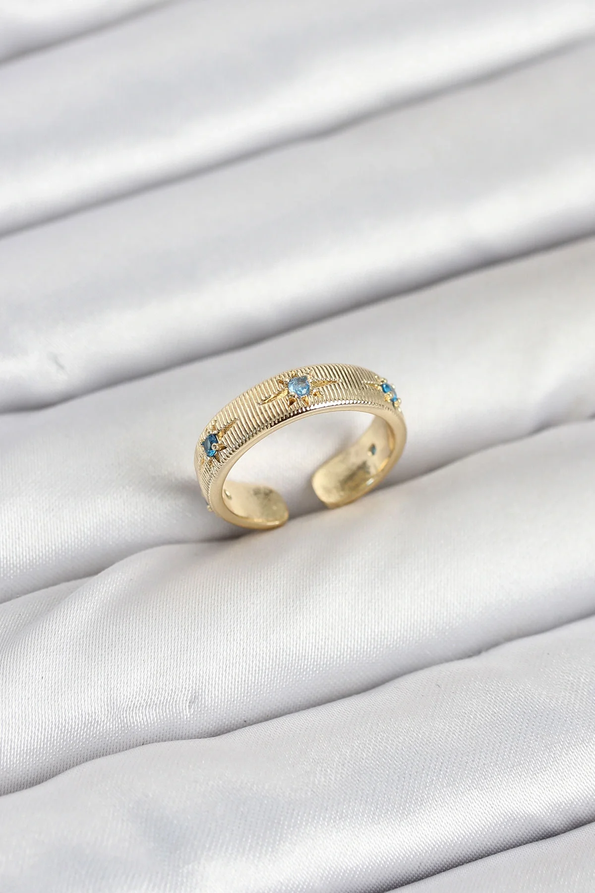 Pirinç Gold Renk Mavi Zirkon Taşlı Kutup Yıldızı Model Kadın Yüzük