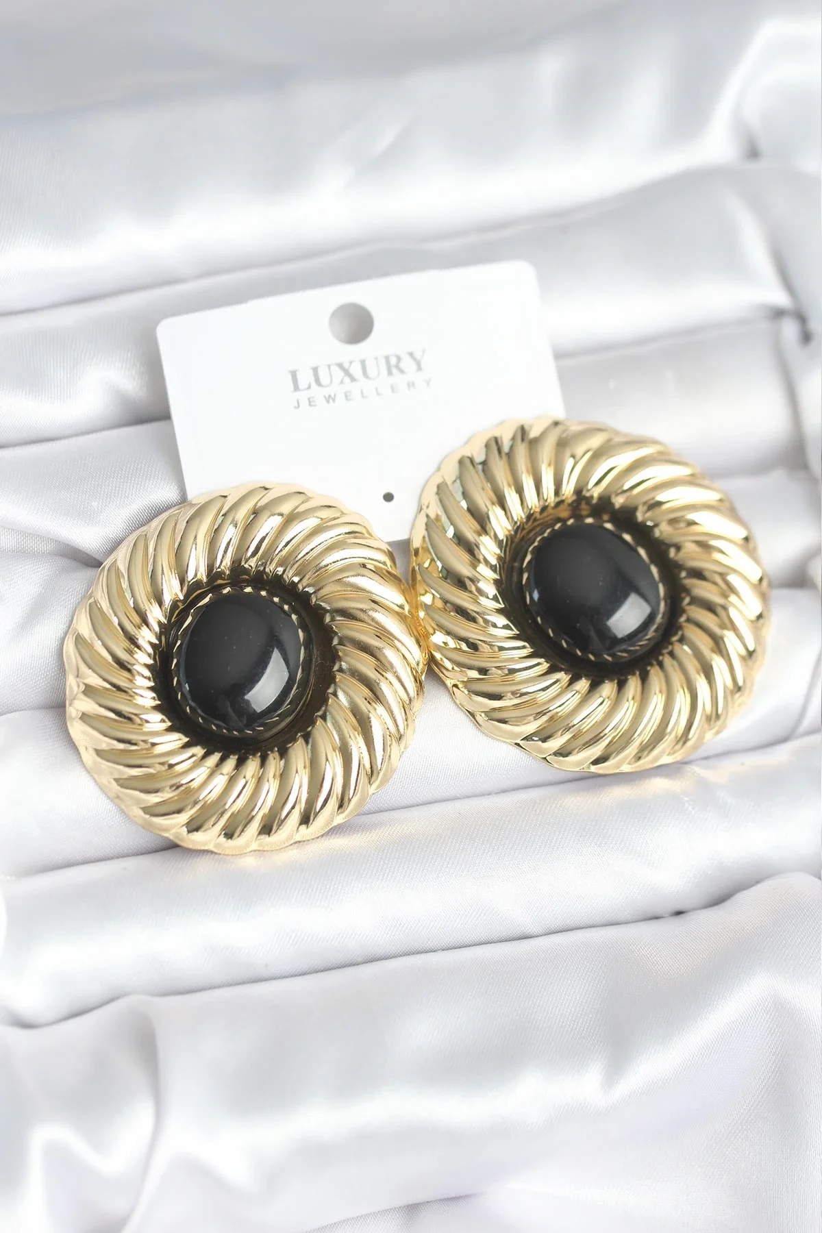 Pirinç Gold Renk Siyah Boncuklu Vintage Kadın Küpe
