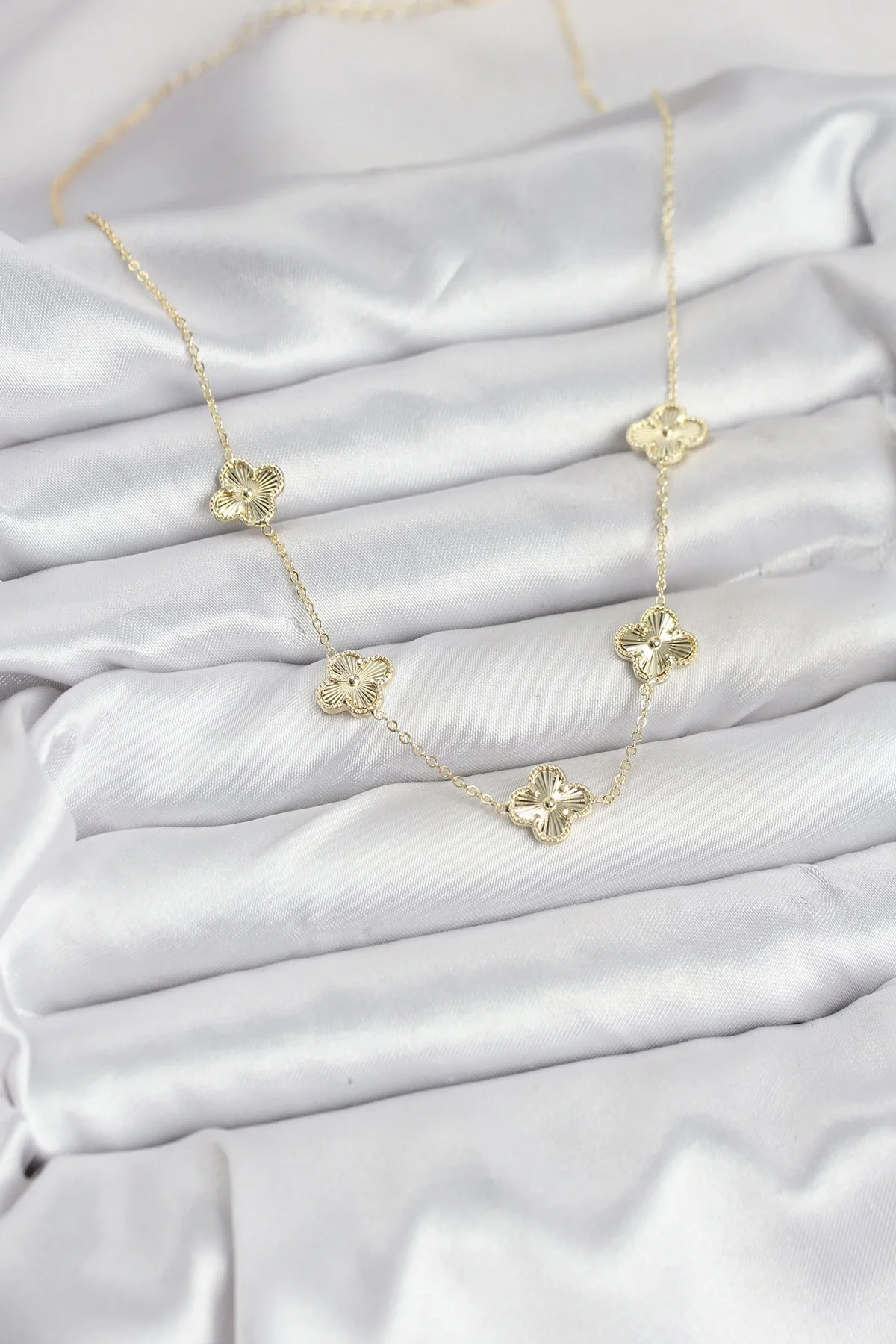 Pirinç Gold Renk Yonca Kadın Kolye