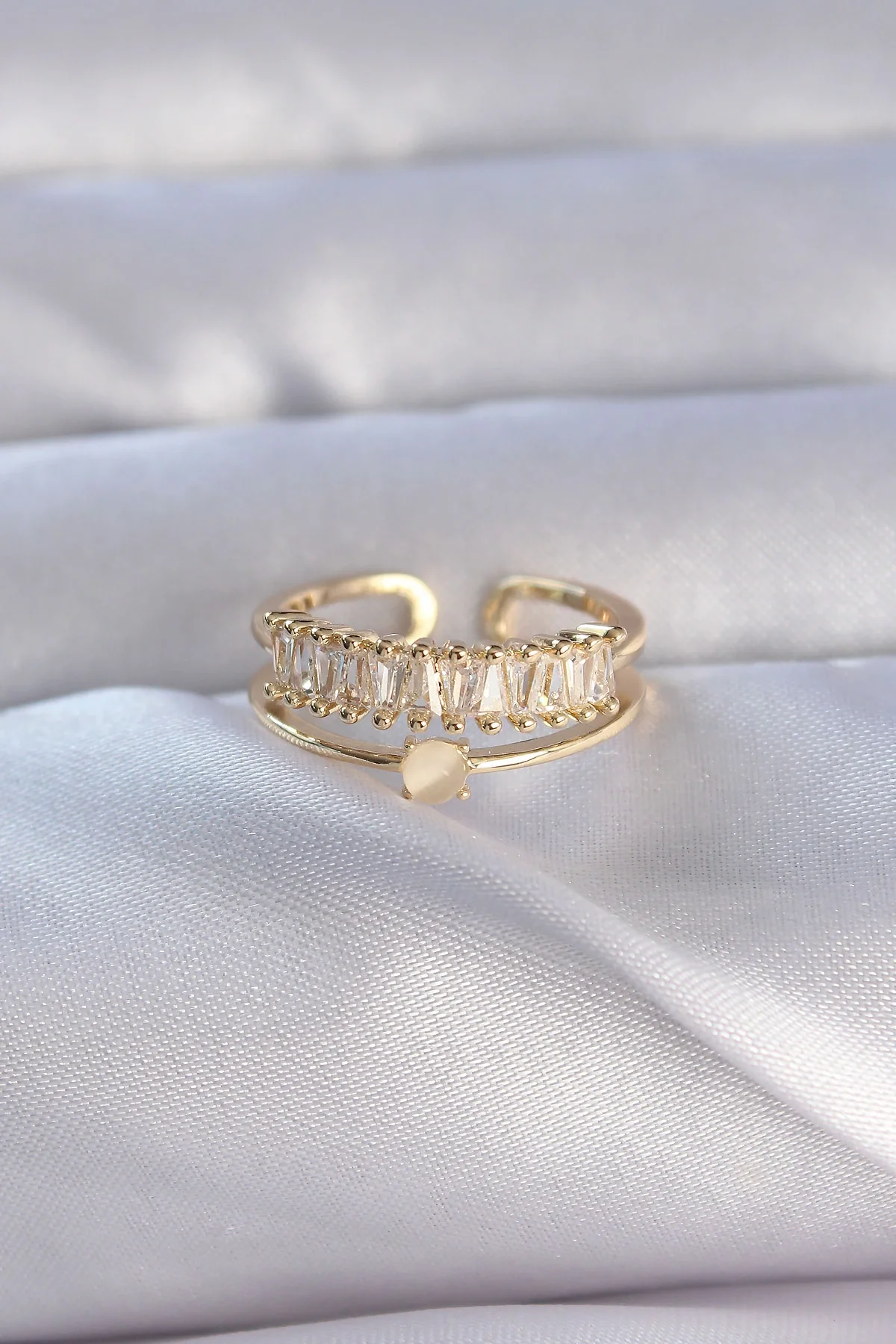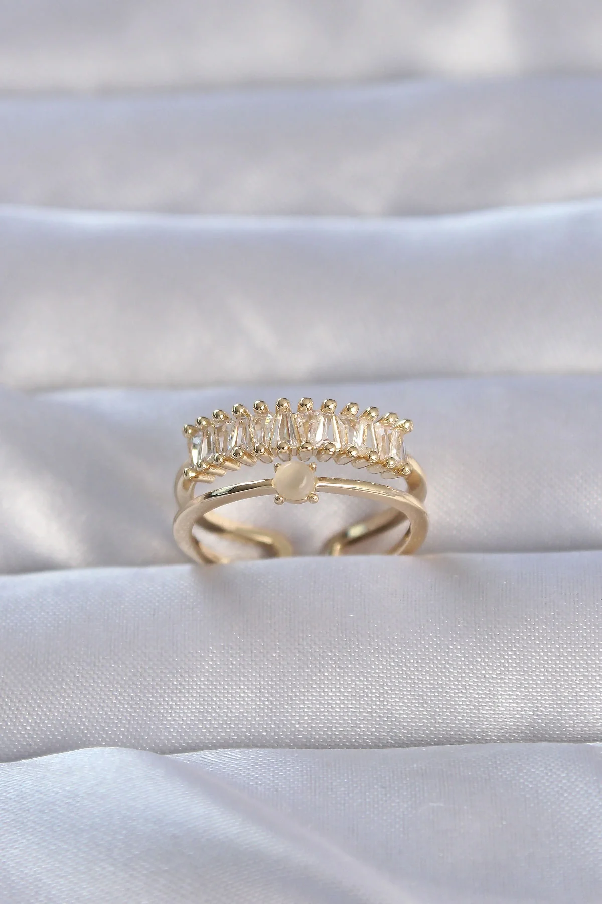 Pirinç Gold Renk Zirkon Taşlı Baget Su Yolu Model Ayarlanabilir Yüzük