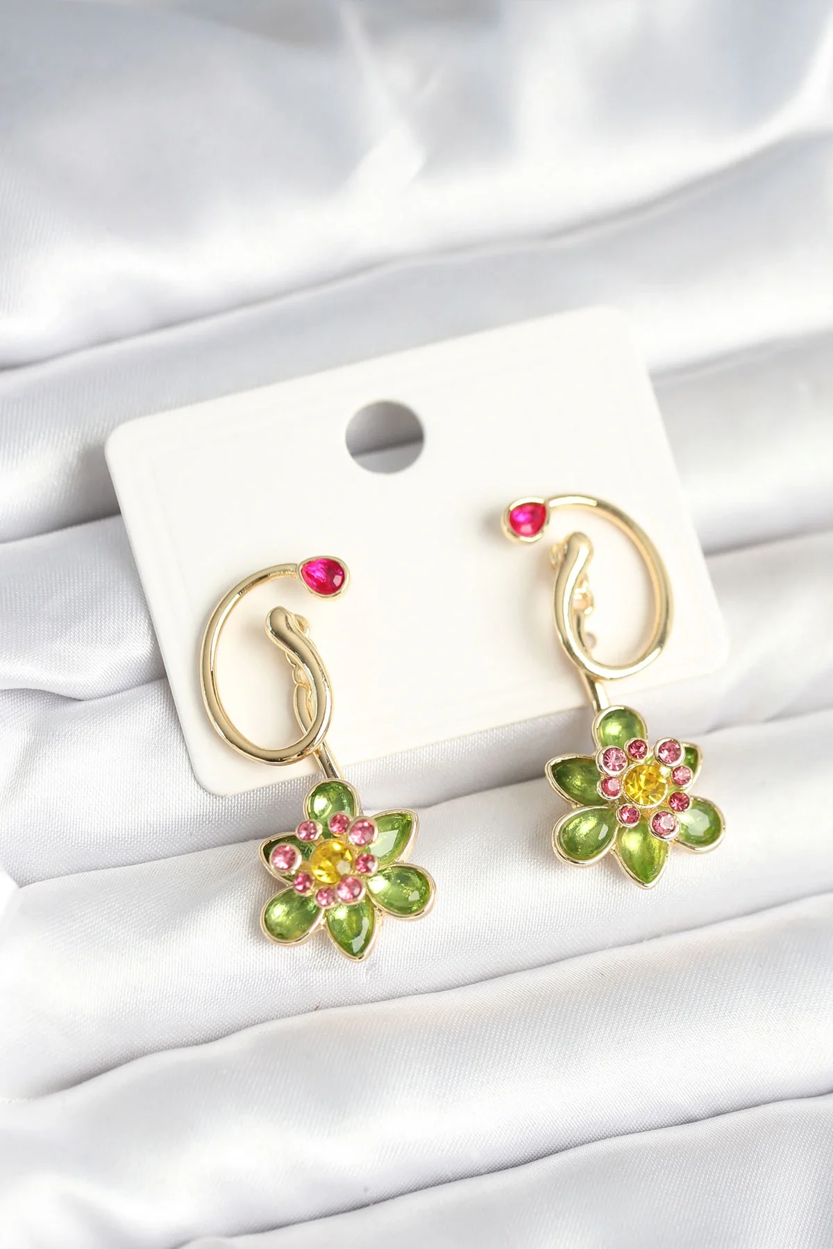 Pirinç Gold Renk Zirkon Taşlı Çiçek Model Kadın Küpe