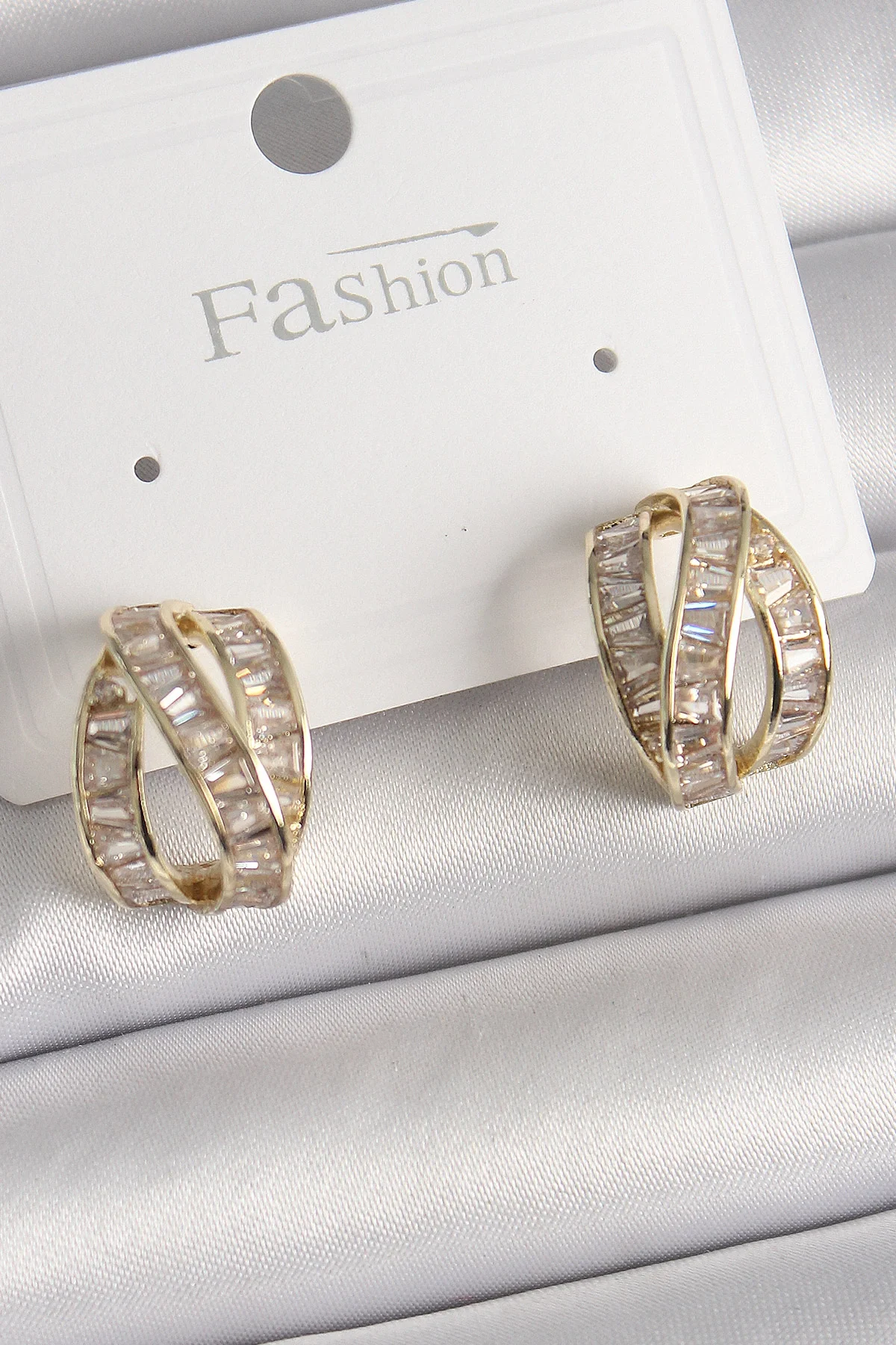 Pirinç Gold Renk Zirkon Taşlı Düğüm Halka Model Kadın Küpe