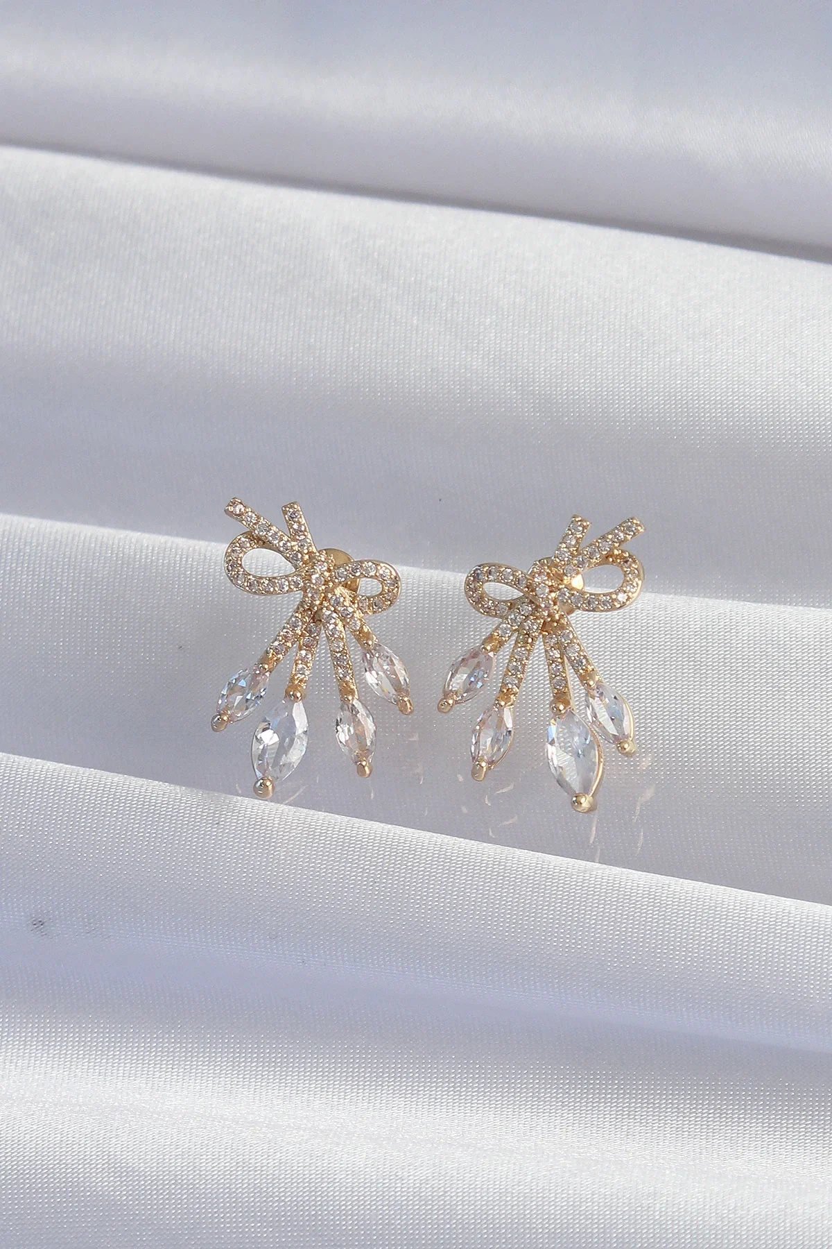 Pirinç Gold Renk Zirkon Taşlı Fiyonk Küpe