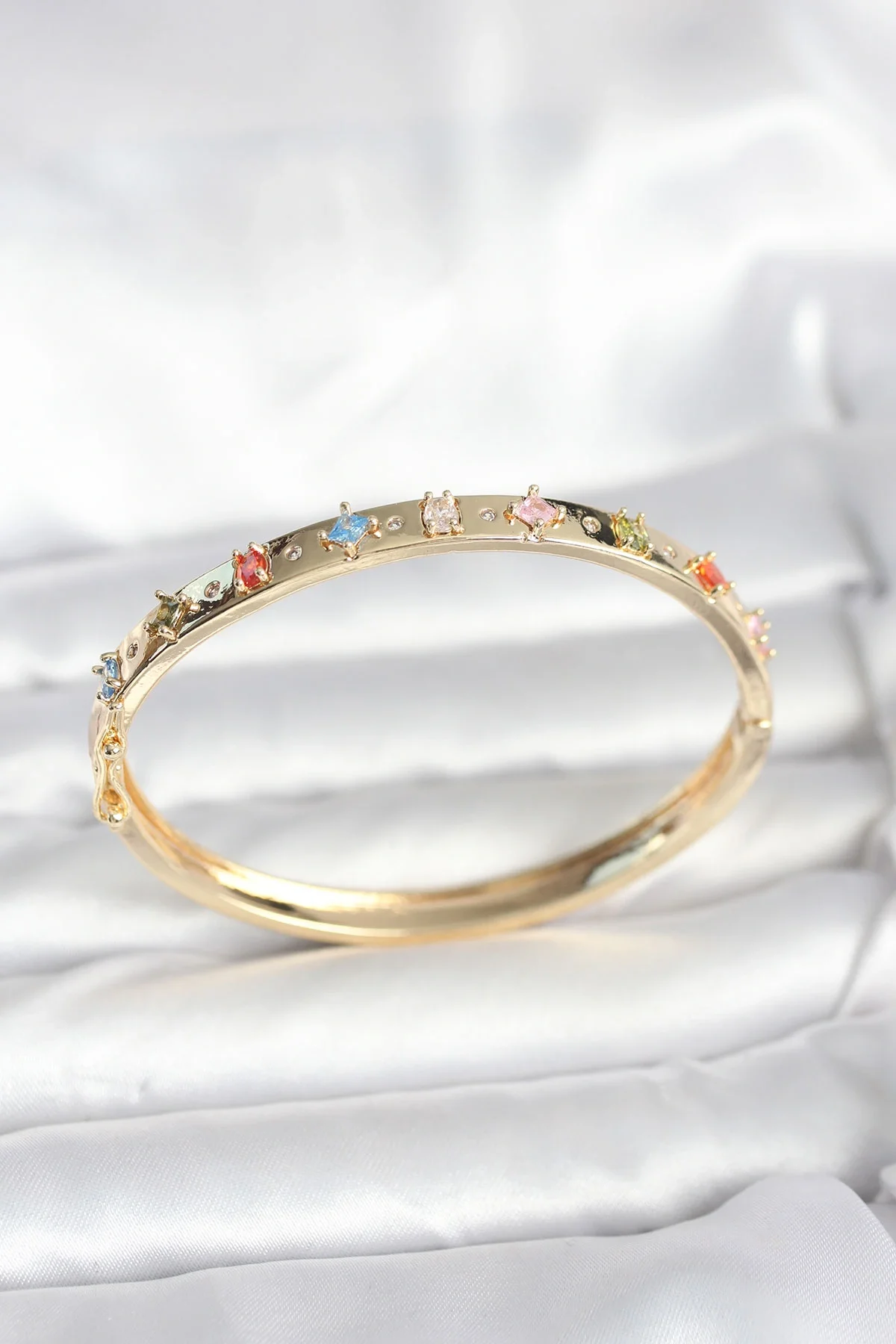 Pirinç Gold Renk Zirkon Taşlı Kelepçe Bileklik
