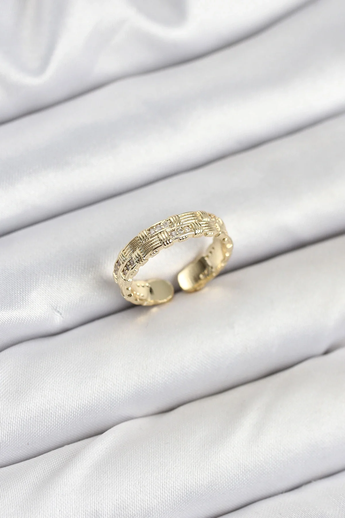 Pirinç Gold Renk Zirkon Taşlı Sırım Kadın Yüzük