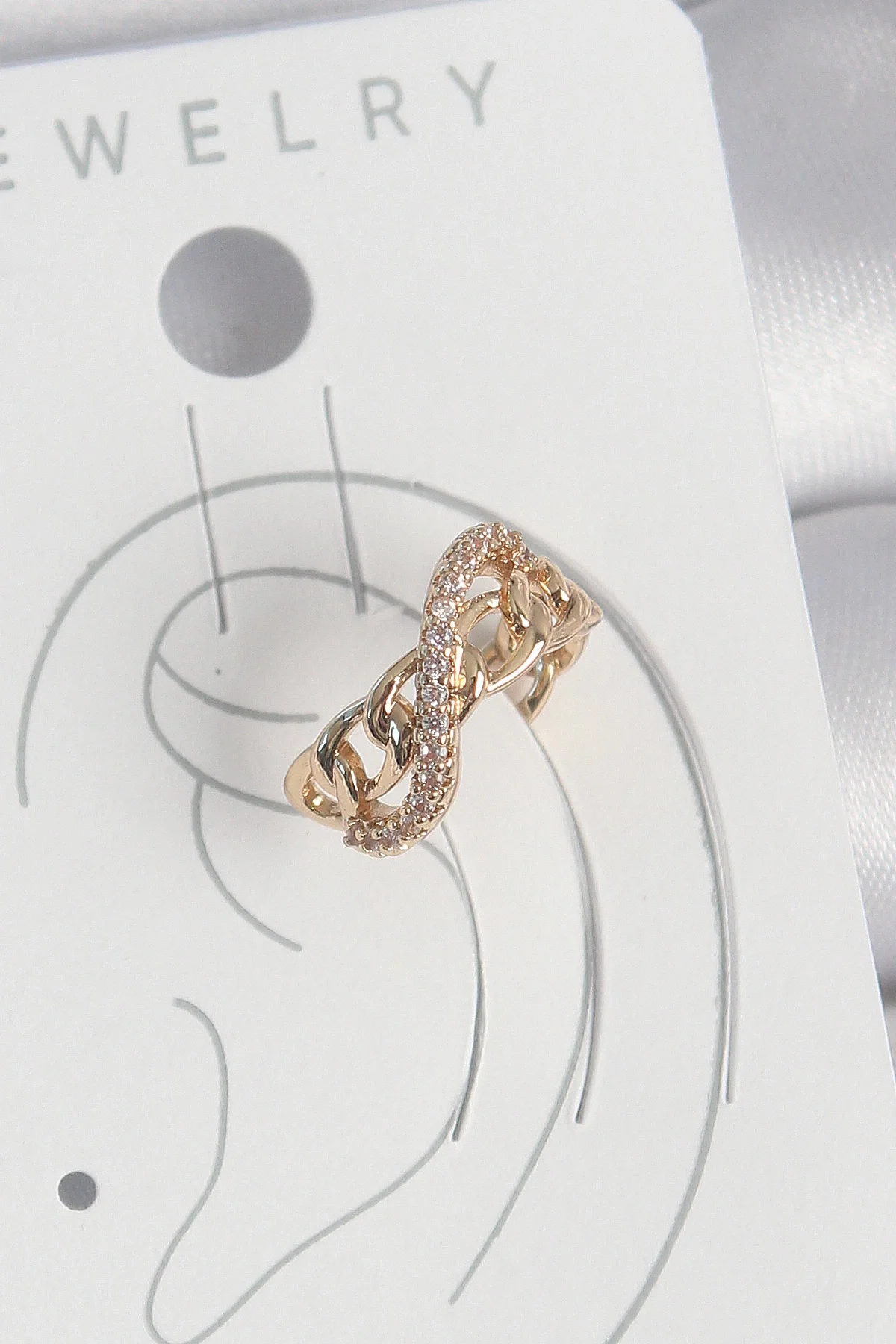 Pirinç Gold Renk Zirkon Taşlı Sonsuzluk Zincir Model Kadın Kıkırdak Küpe