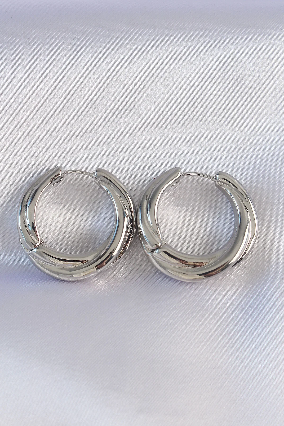 Pirinç Gümüş Renk Asimetrik Kıvrım Küpe