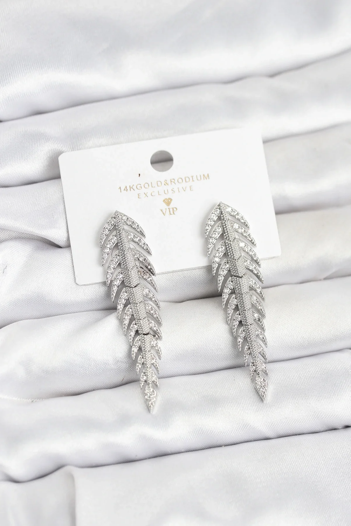 Pirinç Gümüş Renk Balık Sırtı Model Zirkon Taşlı Kadın Küpe