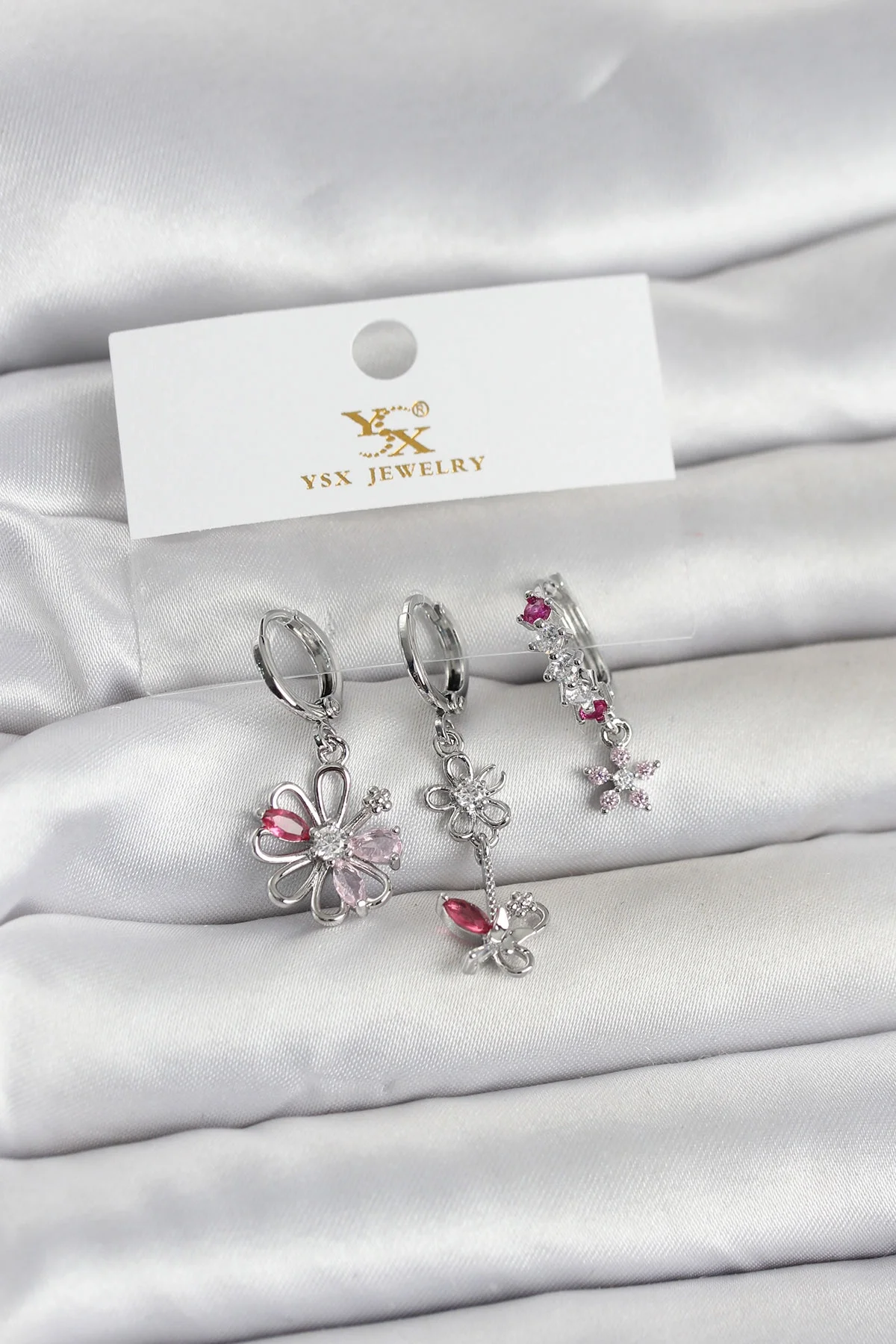 Pirinç Gümüş Renk Çiçek Model 3'lü Kadın Küpe