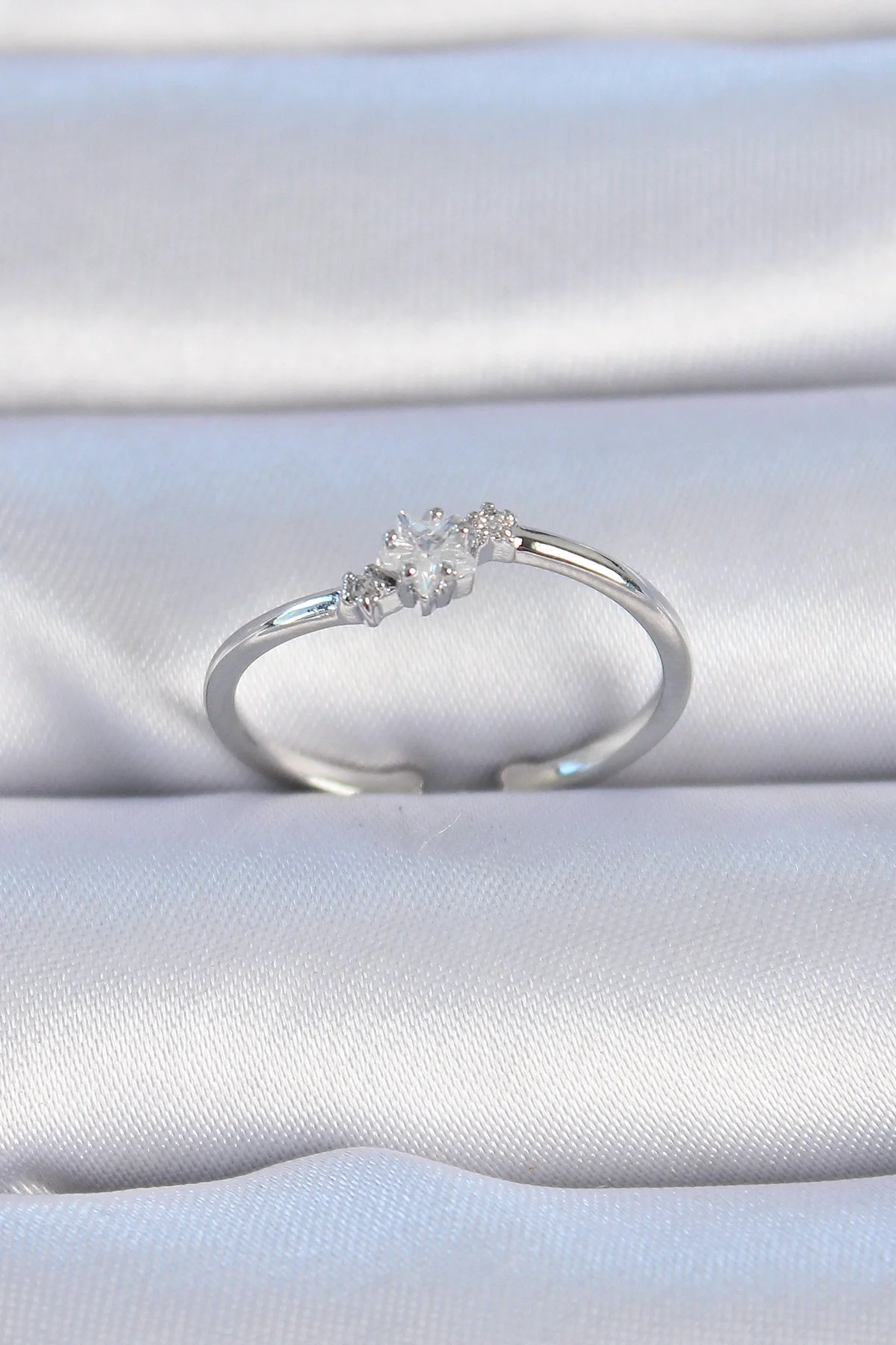 Pirinç Gümüş Renk Çiçek Model Zirkon Taş Detay Kadın Yüzük